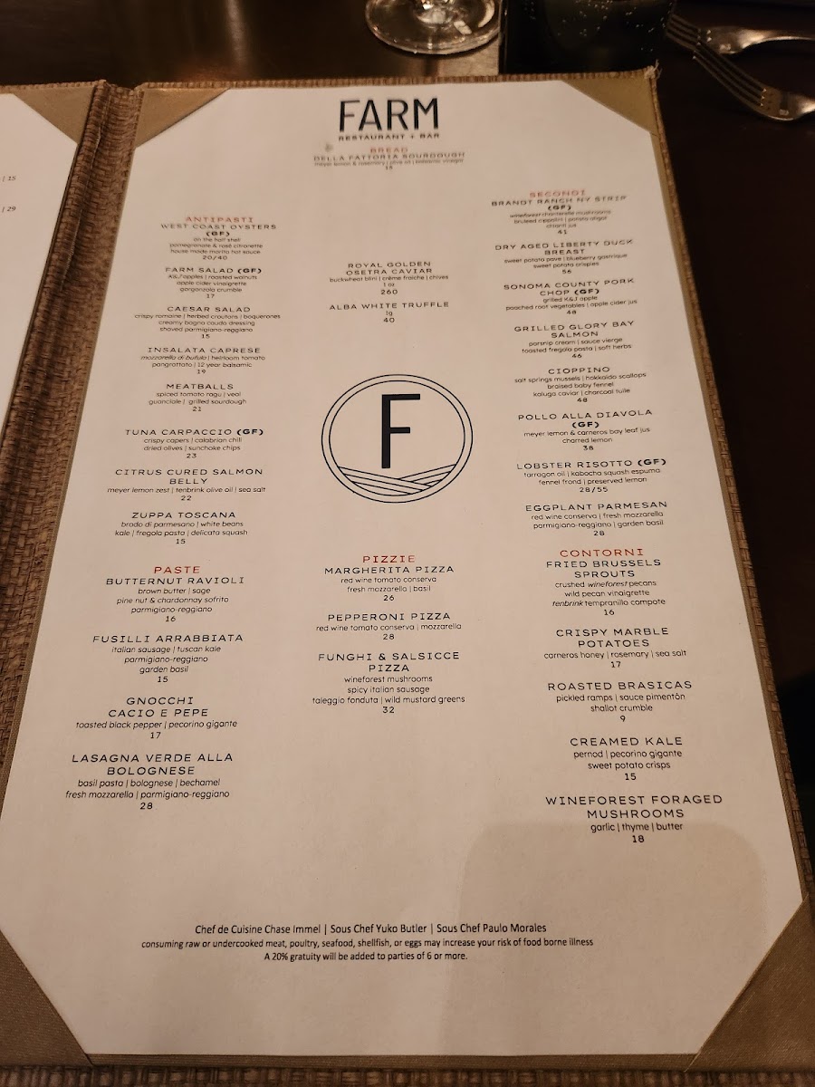 FARM Restaurant Bar Menu